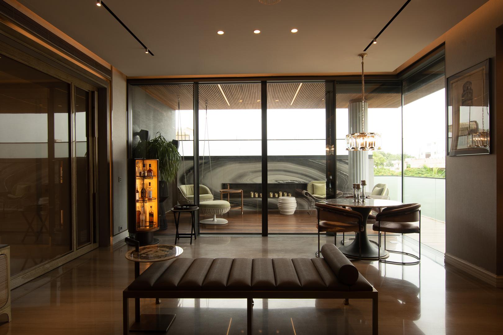 The A House is designed as a luxurious abode for a joint family in Delhi, spanning five floors, including a basement, with a total built-up area of 12,000 square feet. The design features internal courtyards, including one in the basement, and spacious terraces that allow natural light to brighten every corner of the house and ensure ample ventilation. The design language is one of modern luxury, highlighted by metal elements that accentuate the neutral color palette. The furniture collection includes pieces from several eminent brands from Italy and around the world.